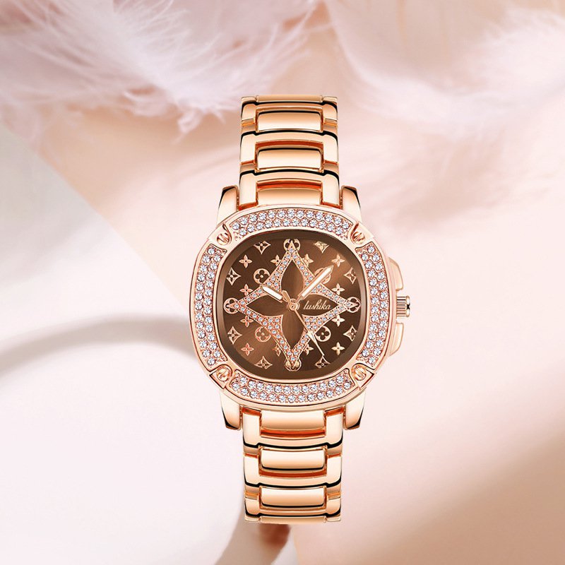 キラキラ華見え方形腕時計